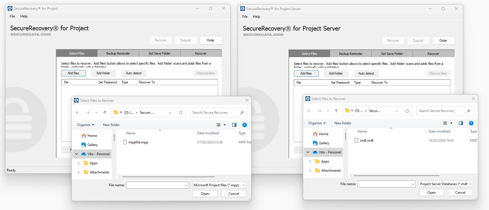 SecureRecovery for Project is designed for Microsoft Project databases. You can determine whether this powerful tool will be able to restore your data by using the cost-free demo version to analyze your files.