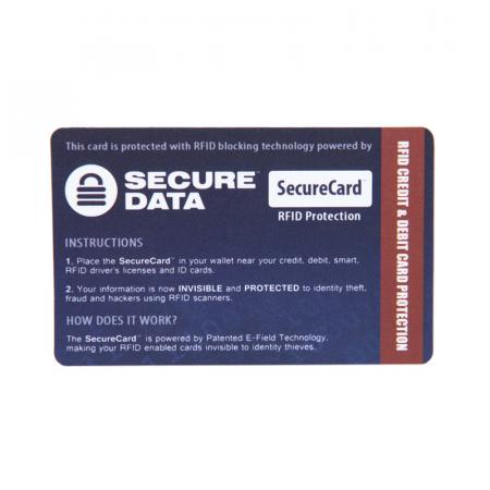 SecureCard® has been meticulously developed and tested, and has passed every major RFID-blocking and signal-protection test. Once you place your SecureCard® into your wallet, card holder, sleeve, or money clip, it works by blocking RFID/NFC readers from scanning your electronic payment information without your knowledge.
