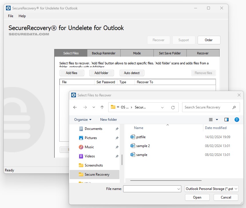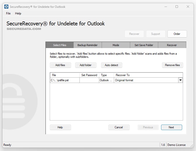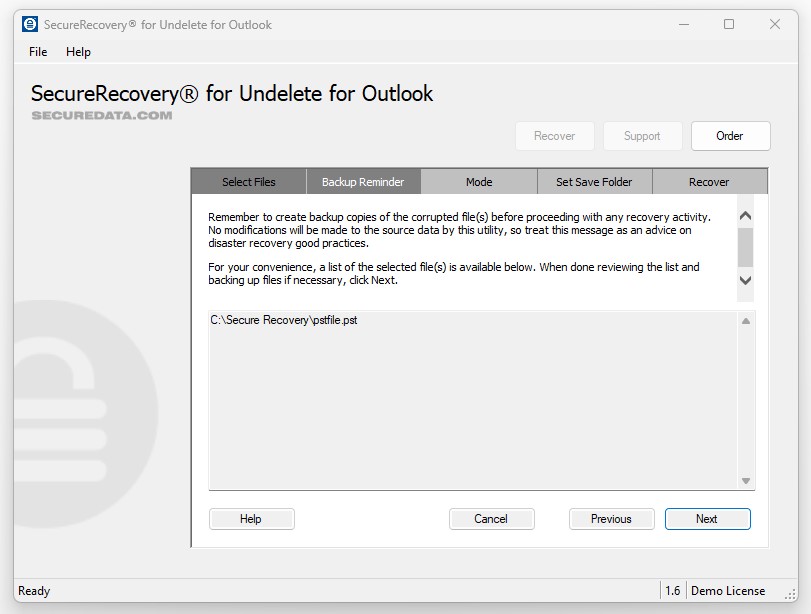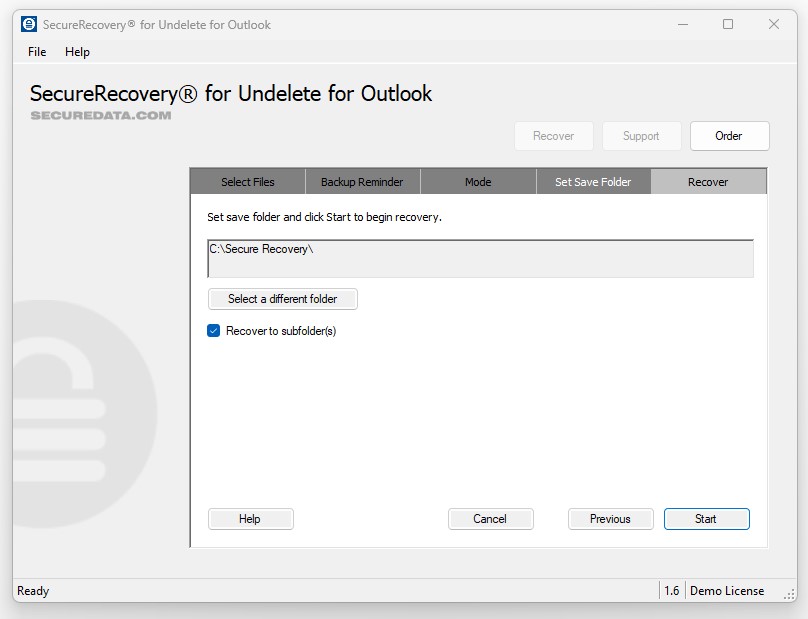 Please note that you should never install SecureUndelete for Outlook on the device that stored your original Outlook file. This could overwrite the data permanently. Follow the instructions carefully for the best results.