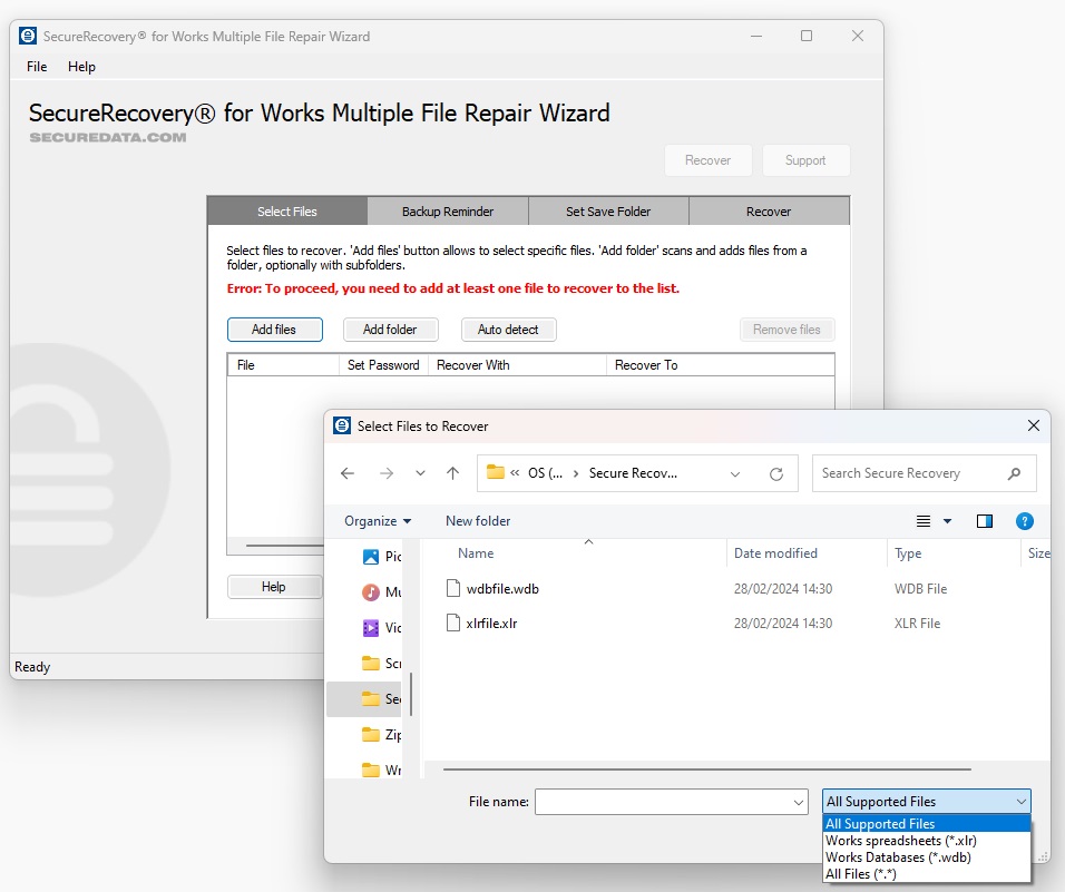 SecureRecovery® for Works Database is the most powerful data restorationutility available to home and office users, without special equipment or expertengineers. If you are facing the threat of data loss due to a damaged Works database, order your copy of SecureRecovery® for Works Suite today.