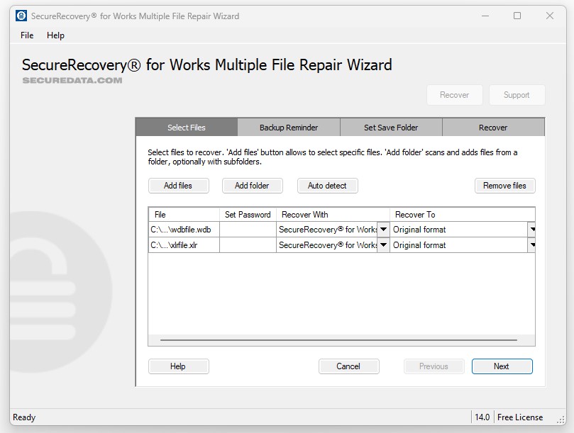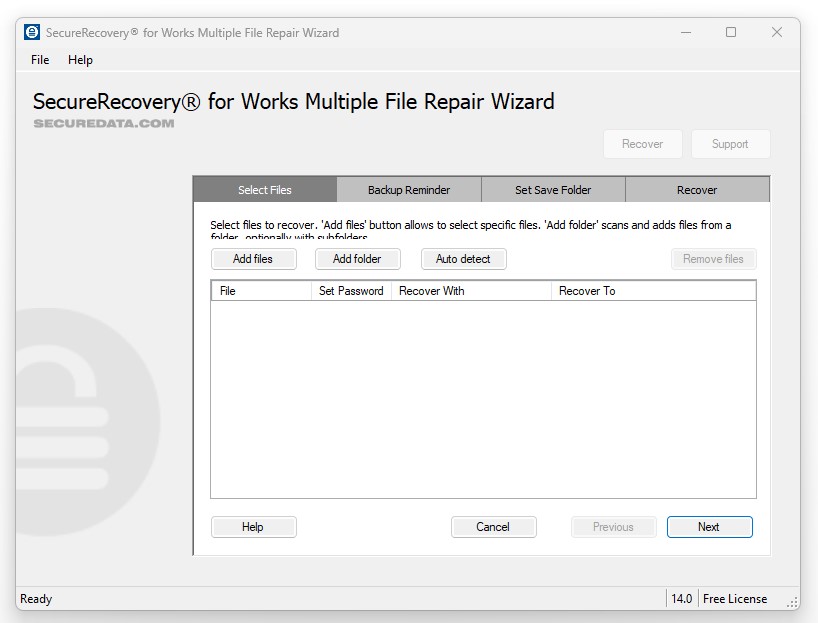 We always encourage users to back up their files, since this is the best way to allow for additional recovery attempts. While SecureRecovery fo Works Word is a safe program, any attempt at software data recovery could cause file issues under the right circumstances.
