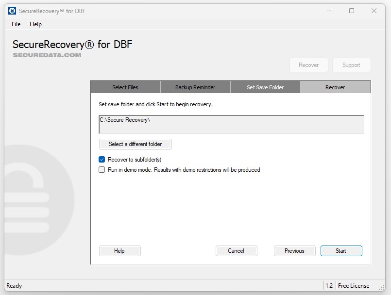 Before installing or running SecureRecovery for DBF, we recommend making complete backups of all Visual FoxPro databases. Never run data recovery software without a backup.