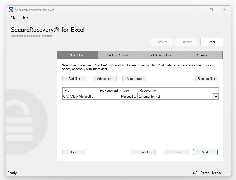 Before using either the demo version or the full version of SecureRecovery for Excel, we strongly recommend making backups of all of your damaged spreadsheets.