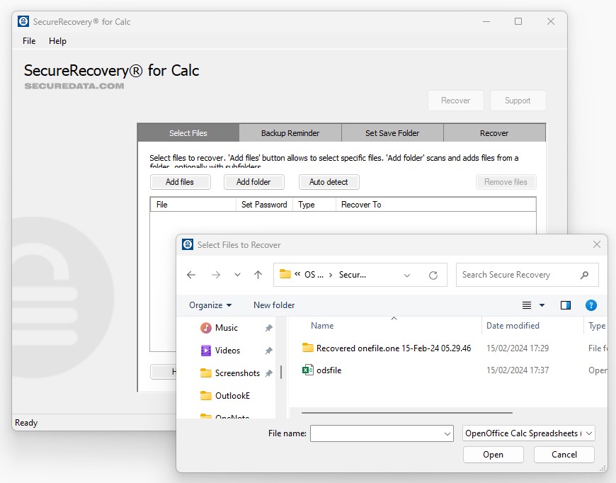 SecureRecovery® for Calc provides comprehensive file repair for Calc spreadsheets when corruption strikes Calc files, OpenOffice users face the loss of vital data. SecureRecovery for Calc provides a simple solution. This powerful recovery utility is designed specifically for OpenOffice Calc, and it quickly locates and repairs damaged files, restoring your spreadsheets to full functionality.