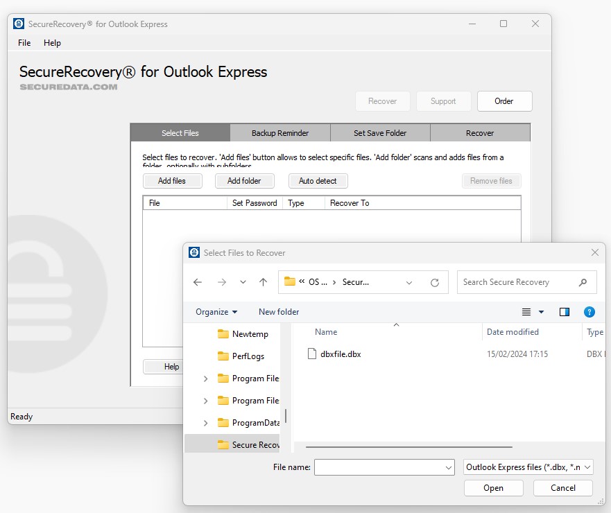 Microsoft Outlook Express files may be vulnerable to corruption, but repairing them is easy with SecureRecovery for Outlook Express. This powerful data recovery tool provides reliable restoration for lost emails, reliably restoring damaged .dbx files and presenting saved messages in stable plain text and HTML formats. If your Outlook Express mailboxes will not open or are too damaged to use, rely on SecureRecovery for Outlook Express to restore your valuable data.